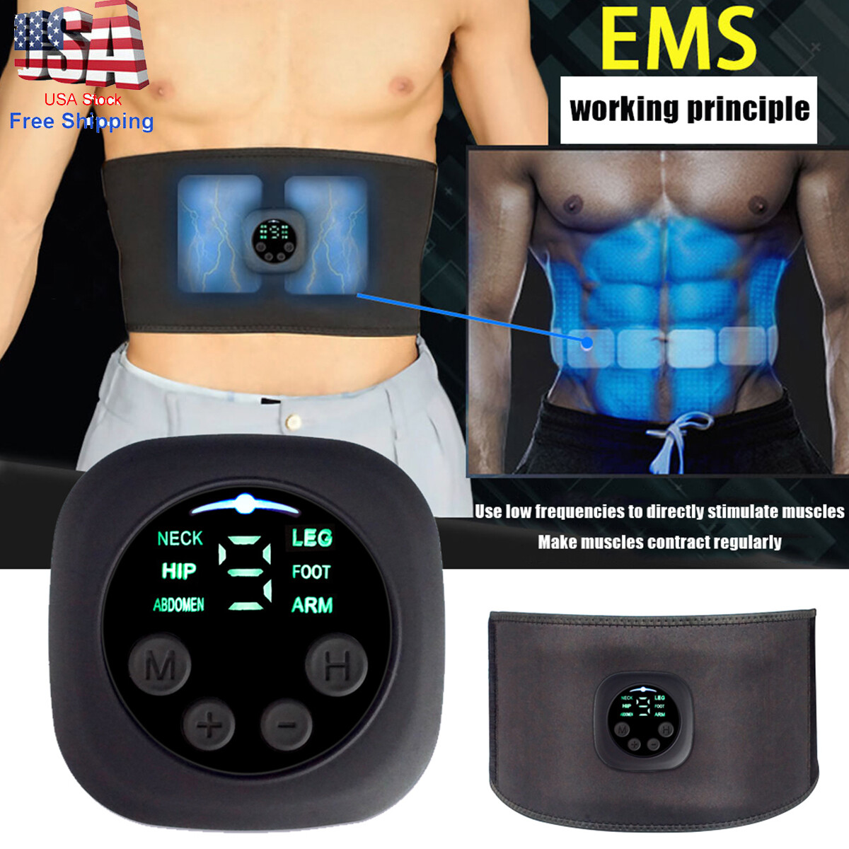 Us Stock Ems Slimming Belt Abdominal Waist Trimmer Adjustable Body Shaping Belt Ebay